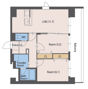 1LDK〜3LDKまで、全室角部屋でご用意いたしました。単身〜ご家族まで、さまざまな生活スタイルに対応いたします。